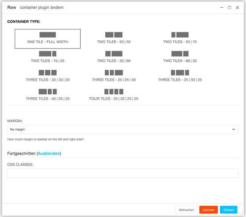 Hier kann der Nutzer nun einstellen wie viele Spalten mit welcher Breite erstellt werden sollen. Die Breite der Spalten verhält sich auf allen Bildschirmgrößen gleich. Spalten können im Nachhinein noch in ihrer Breite angepasst werden, sodass auch Spalten mit unterschiedlichen Breiten innerhalb eines Mehrspalten-Plugins möglich sind: